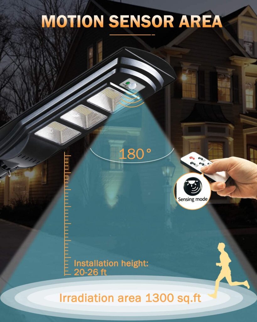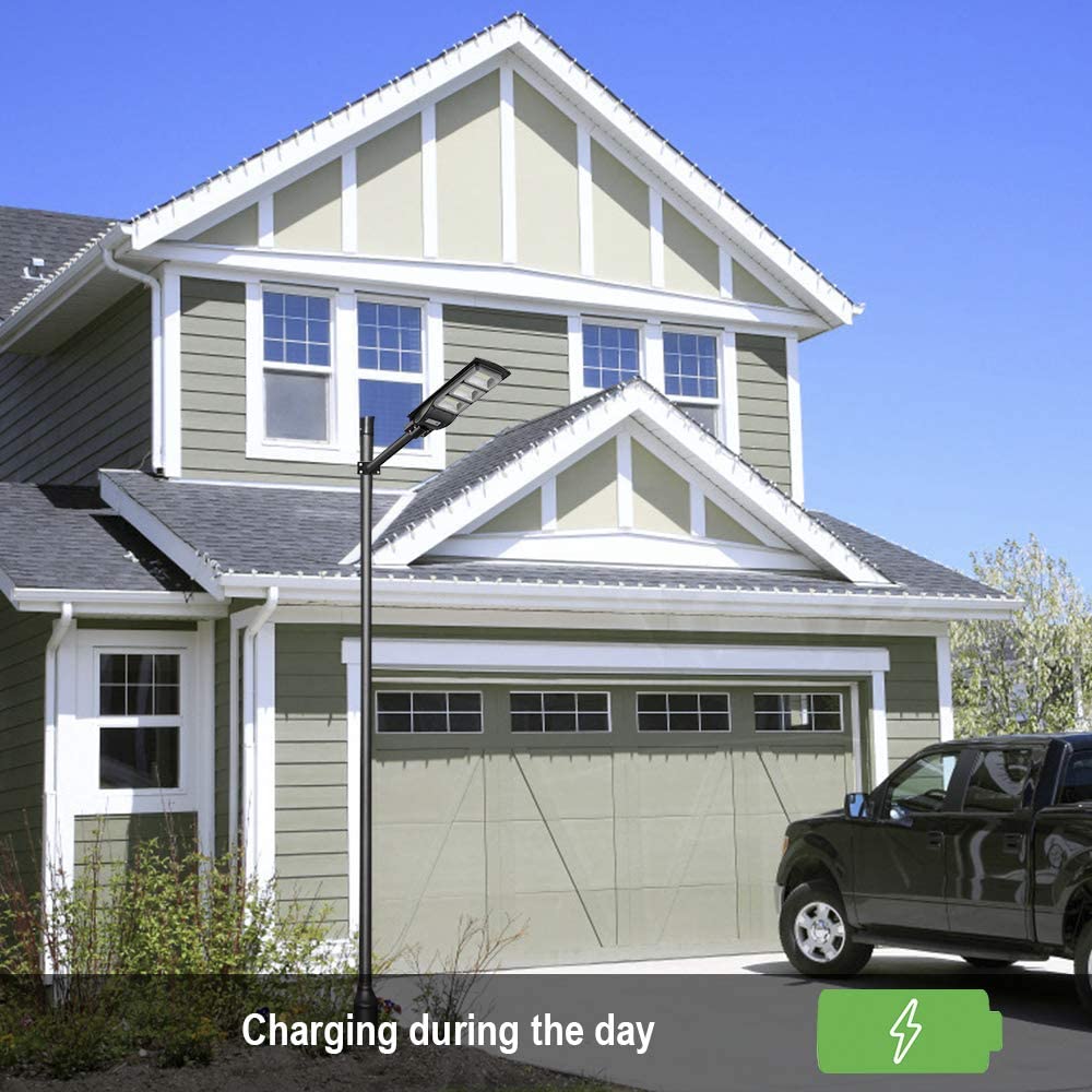 This 150W Solar Street Light, 6000 Lumens features super-bright LEDs that will light up the dark in a matter of seconds. Designed and built for a wide range of lighting applications such as commercial and industrial buildings, parking lots, street, pathway lights, playground, farms, parks and large area Residential and Recreational lighting. This high quality built and very durable light is completely self-contained.